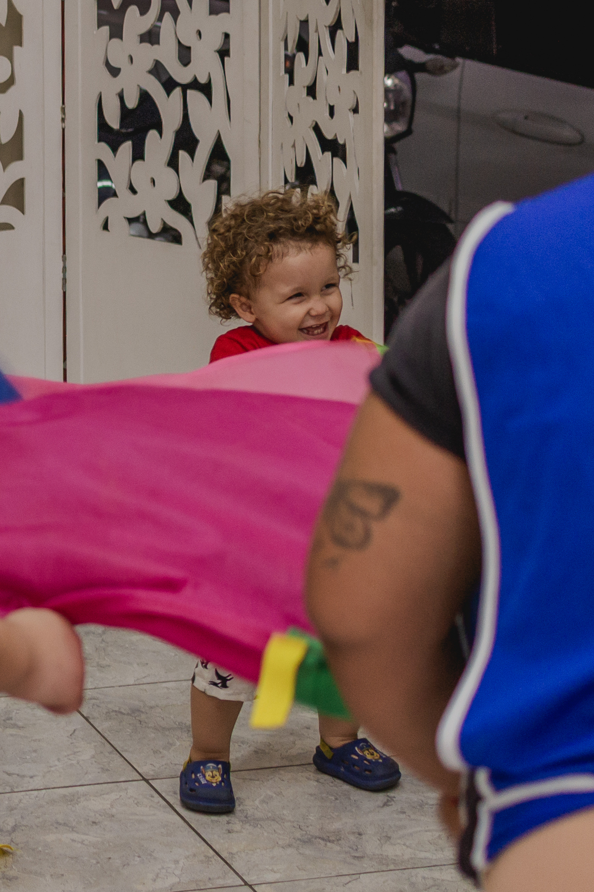 Um que ainda segura forte a mão dos pais.